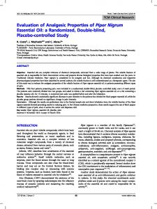 Evaluation of Analgesic Properties of Piper Nigrum Essential Oil